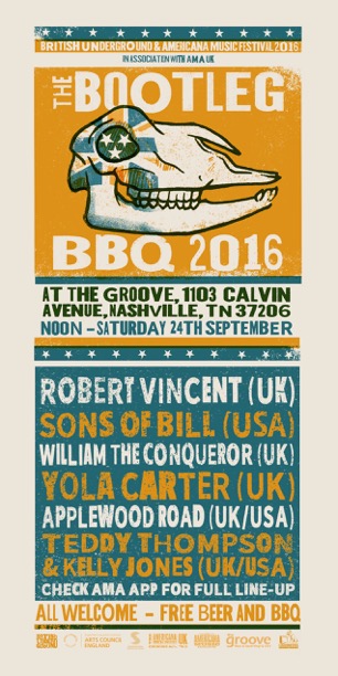 Wednesday 7 September, London – International music showcase producer and curator British Underground will partner with the Americana Music Association to host the fourth annual Bootleg BBQ in Nashville, during AmericanaFest the world’s biggest celebration of Americana music.