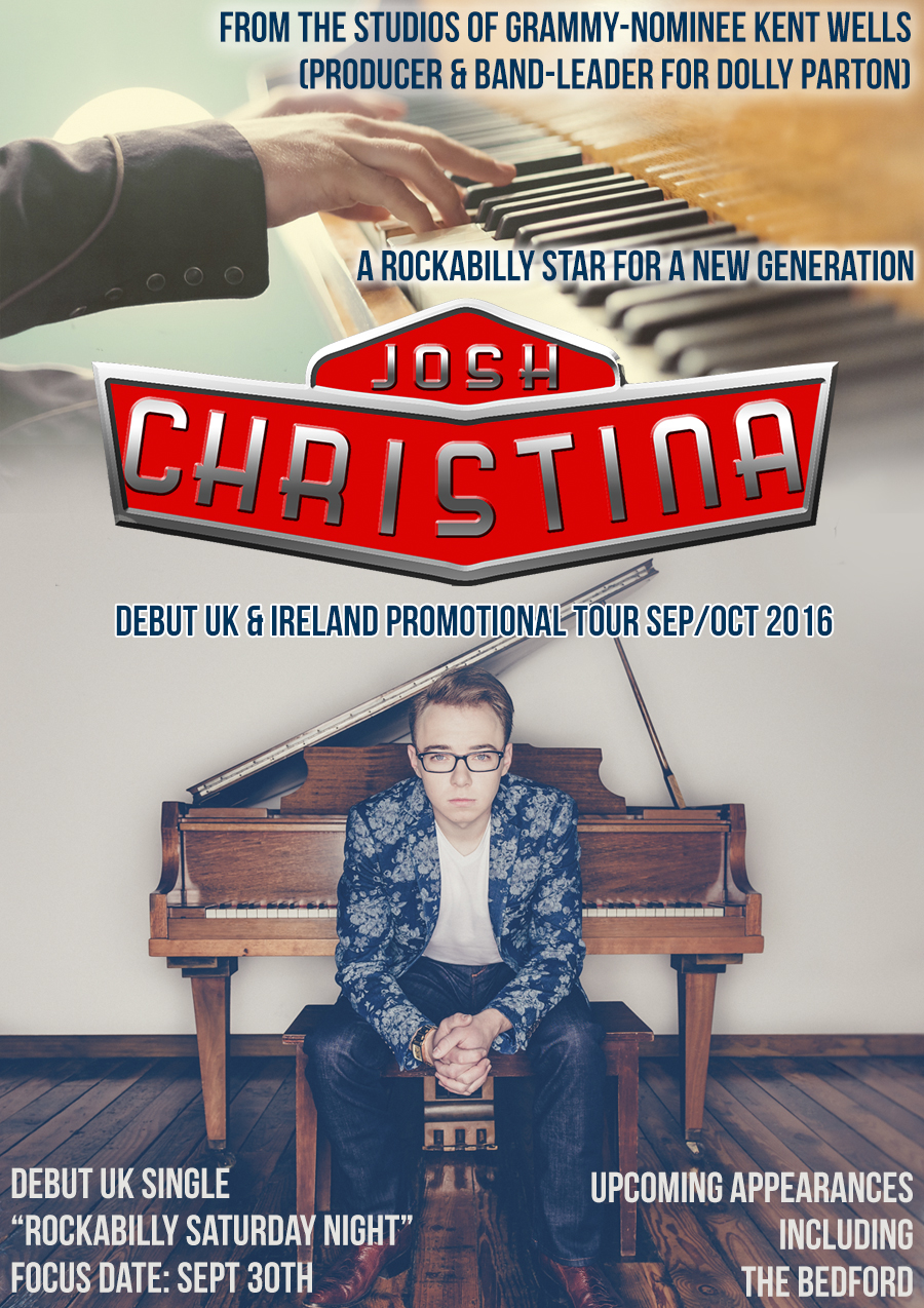 Josh is produced by Grammy nominee Kent Wells (Dolly Parton’s producer and band leader) and will be visiting the UK and Ireland in late September, early October (Sep. 26th to Oct. 7th) for a promotional tour centered around the release of his debut European single, ‘ROCKABILLY SATURDAY NIGHT‘, on Friday, September 30th.