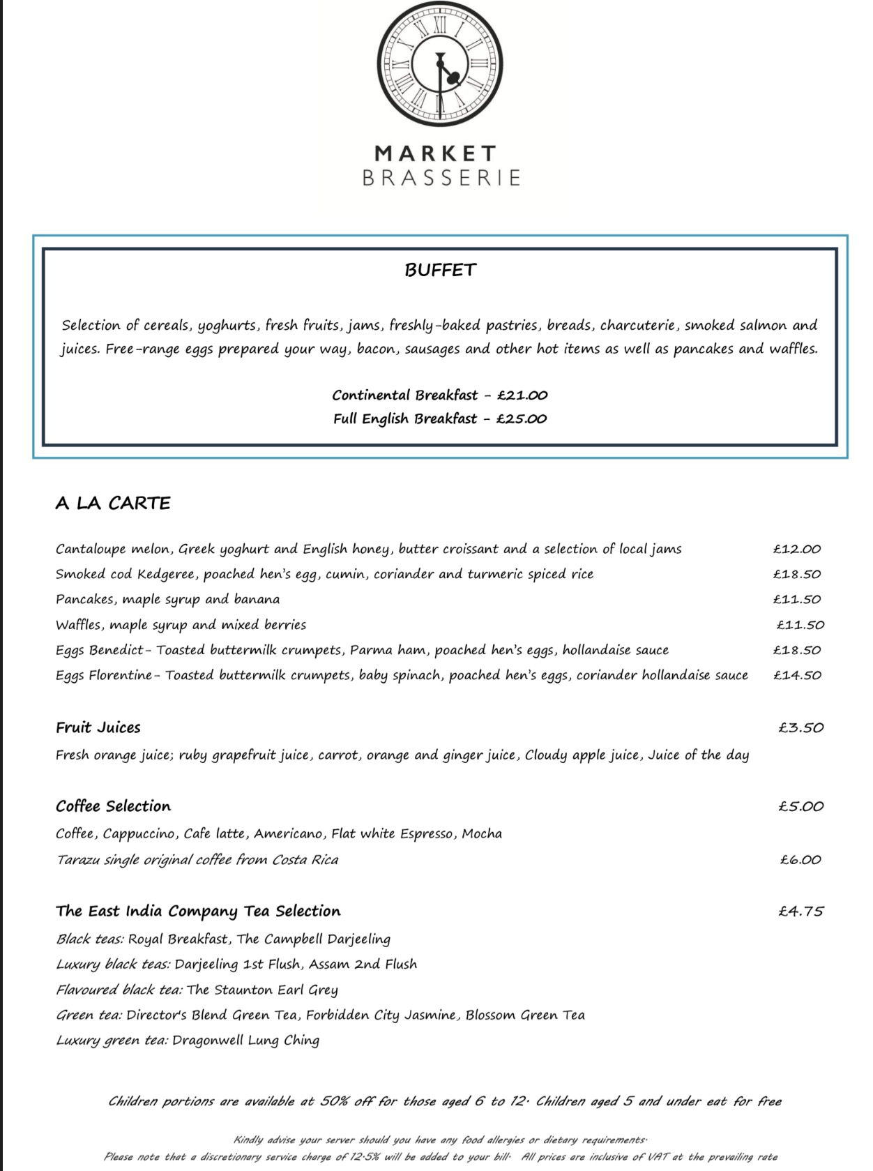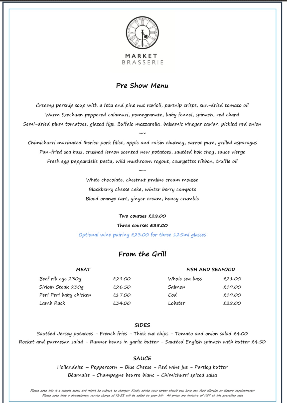 Market Brasserie also offers a Pre Show Menu in their restaurant. This includes two courses for £28 or three courses for £35.