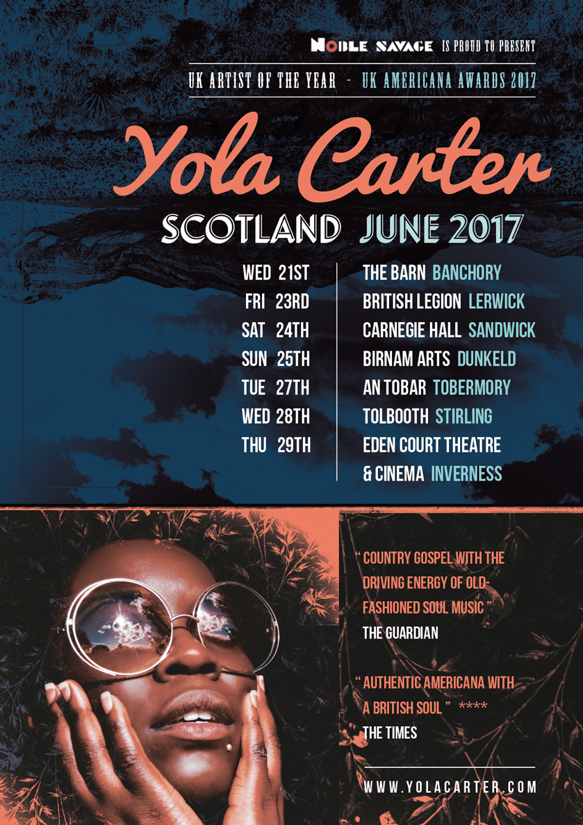 Yola Carter is a rising country-soul singer/songwriter from Bristol, UK, whose recent successes include being voted ‘UK Artist of the Year’ at the AMA UK Awards, a much-hyped performance at AmericanaFest in Nashville and embarking on her first headline UK tour, described by The Times as “spectacular”. Towards the end of 2016 Carter was noted as an ‘artist to watch’ by publications ranging from The Guardian and NPR to Stereogum and No Depression.