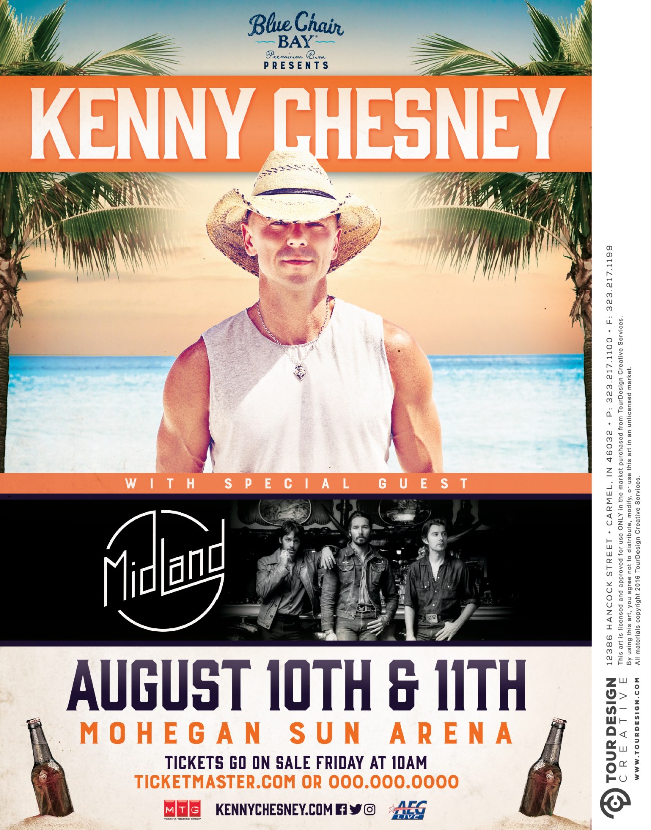 With a second Gillette Stadium show added and close to sold-out, the hunger for that live Kenny Chesney summer experience is pronounced. Though there’s a handful of festival plays on the calendar for this year, Chesney announces four more intimate shows to round out his 2017 live schedule: Tuscaloosa Amphitheater on Aug. 4 and The Wharf Amphitheatre in Orange Beach, Ala. on Aug. 5, followed by two nights at the Mohegan Sun in Uncasville, Conn. on Aug. 10 and 11. All shows this summer are presented by Blue Chair Bay Rum.