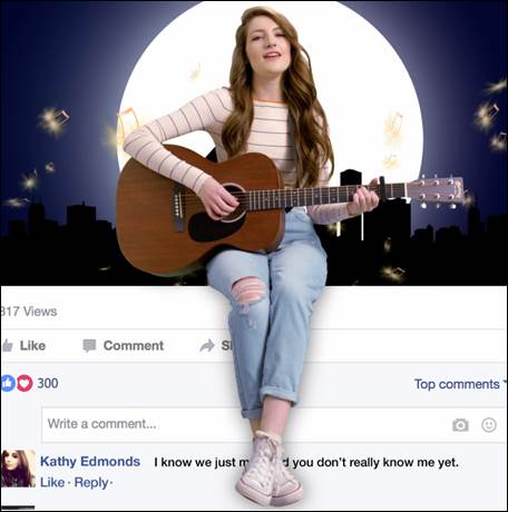 This one-minute clip creatively utilises the world’s most popular social media platform giving the illusion of Catherine performing within Facebook and emerging from the screen as her lyrics appear as comments below.