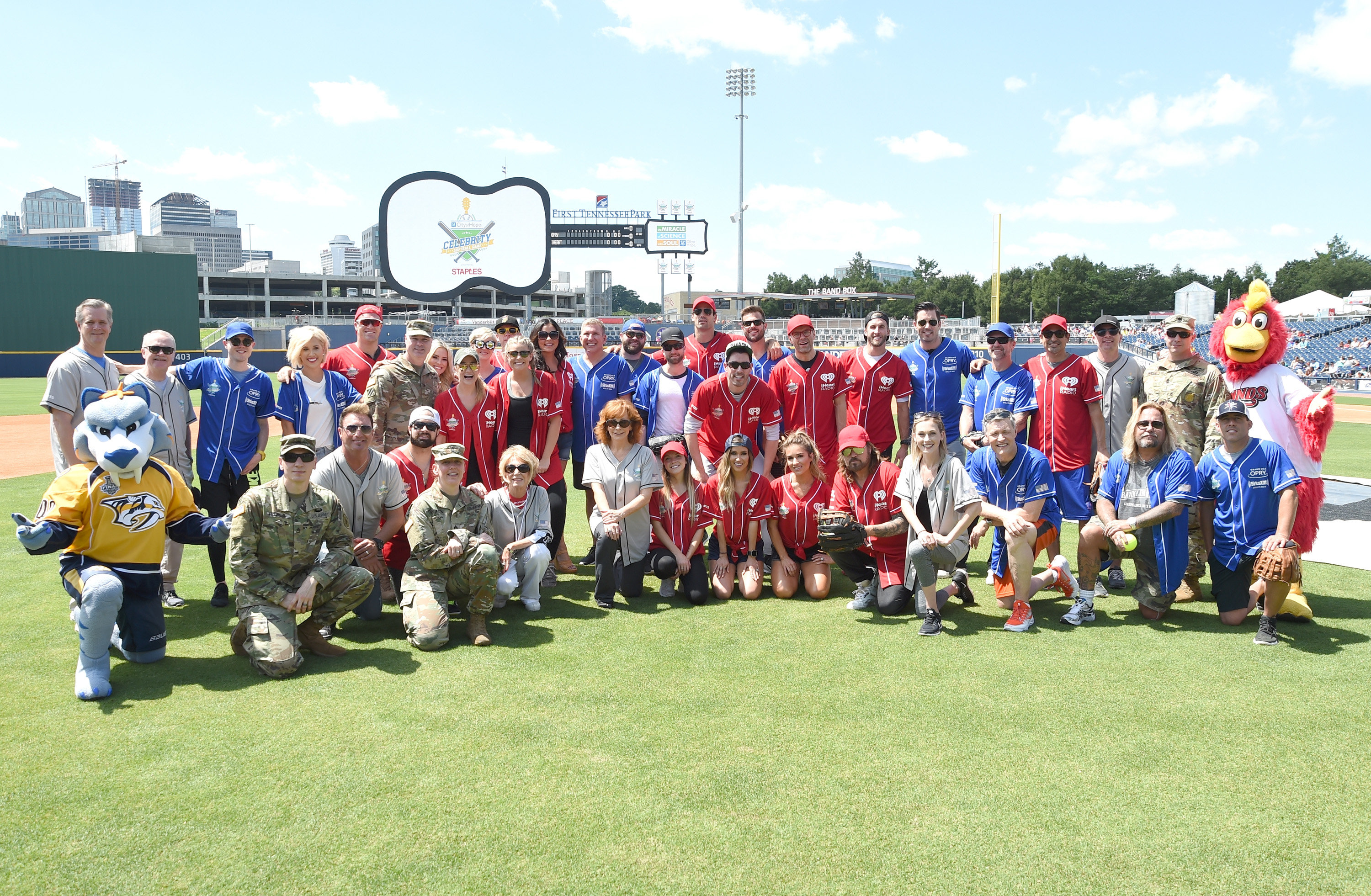 NASHVILLE, TN – JUNE 10: A group photo of both teams at the 27th Annual City of Hope Celebrity Softball Game at First Tennessee Park on June 10, 2017 in Nashville, Tennessee. (Photo by Rick Diamond/Getty Images for City Of Hope)