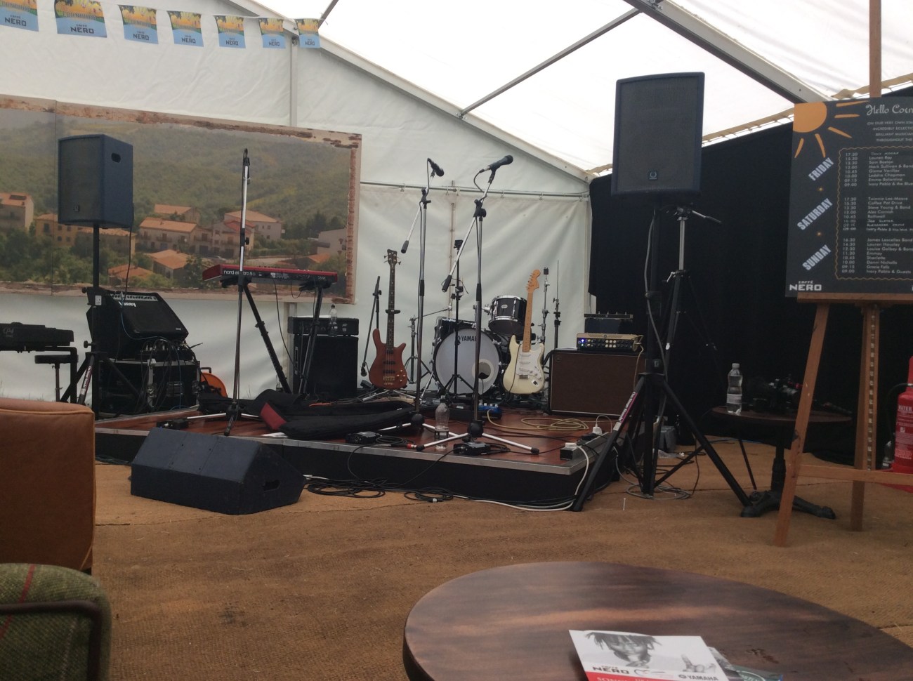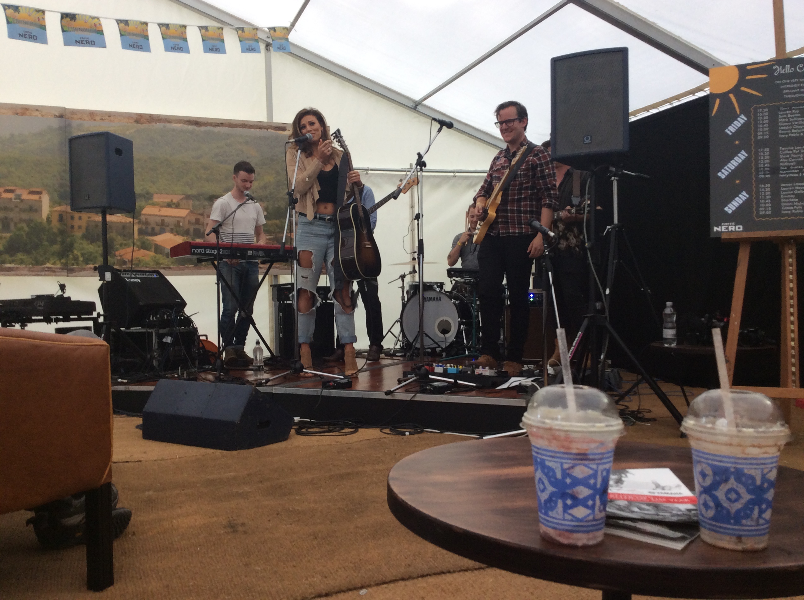 Twinnie performed on the Saturday of Cornbury on the Cafe Nero stage. Set out like a coffee house but in a tent, well Marquee, my friend and I grabbed the front couch.