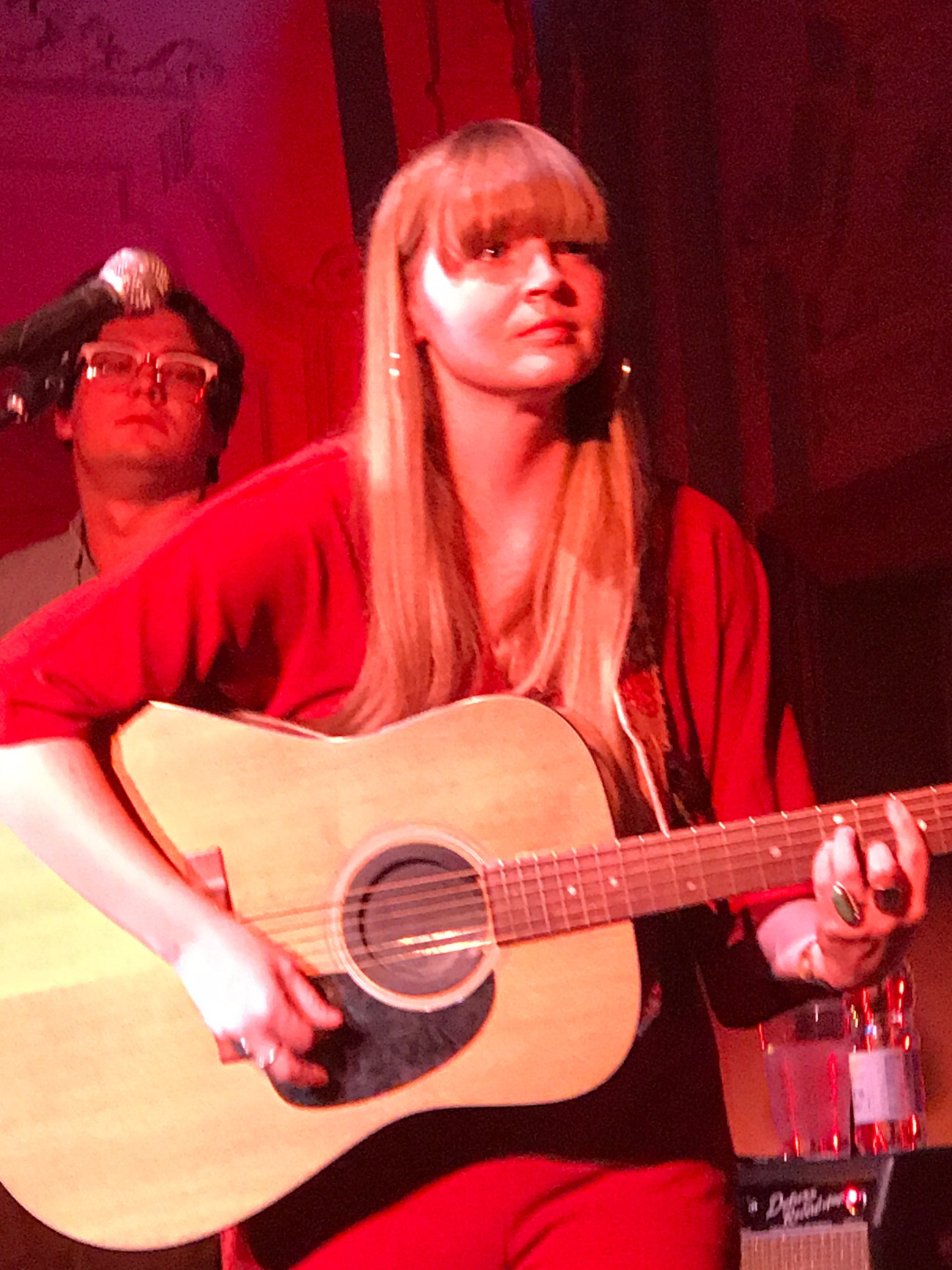 15 Highway Lines continued this trend with Andrews transferring from acoustic to a bright red guitar. This brought jovial comments from her bassist who pointed out that she was using a red guitar, wearing a red jump suit and performing on a red stage with red lights. One thing is certain, the music at Bush Hall that night sure was red hot.