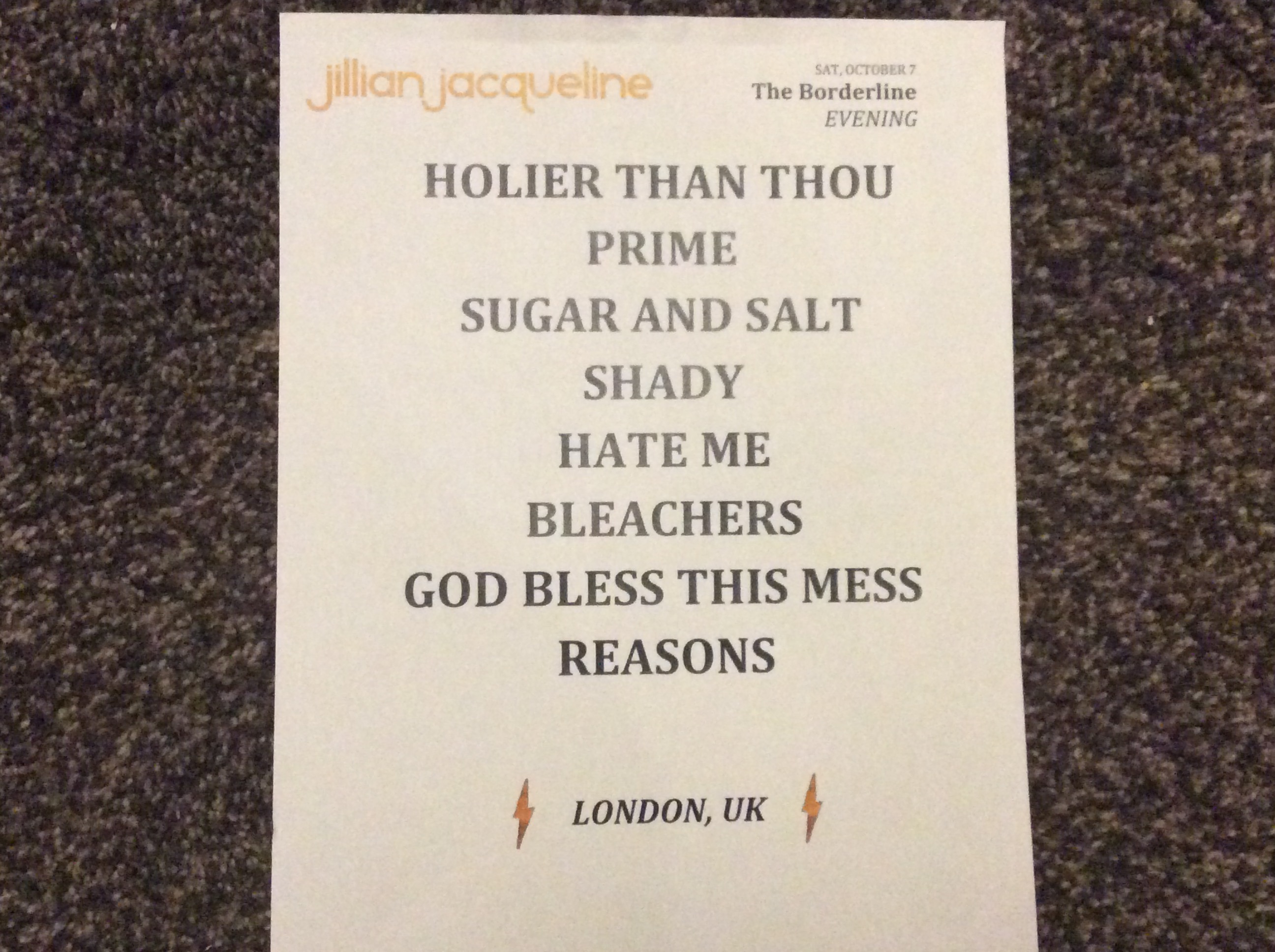 Starting her set with Holier Than Thou from her current EP Side A , Jillian blew the audience away within moments. I love this song, it is about someone who just thinks too much of themselves and is cleverly written. Holier Than Thou has a very feel good chorus that makes you sing along with so much energy, especially if the song resonates with you.