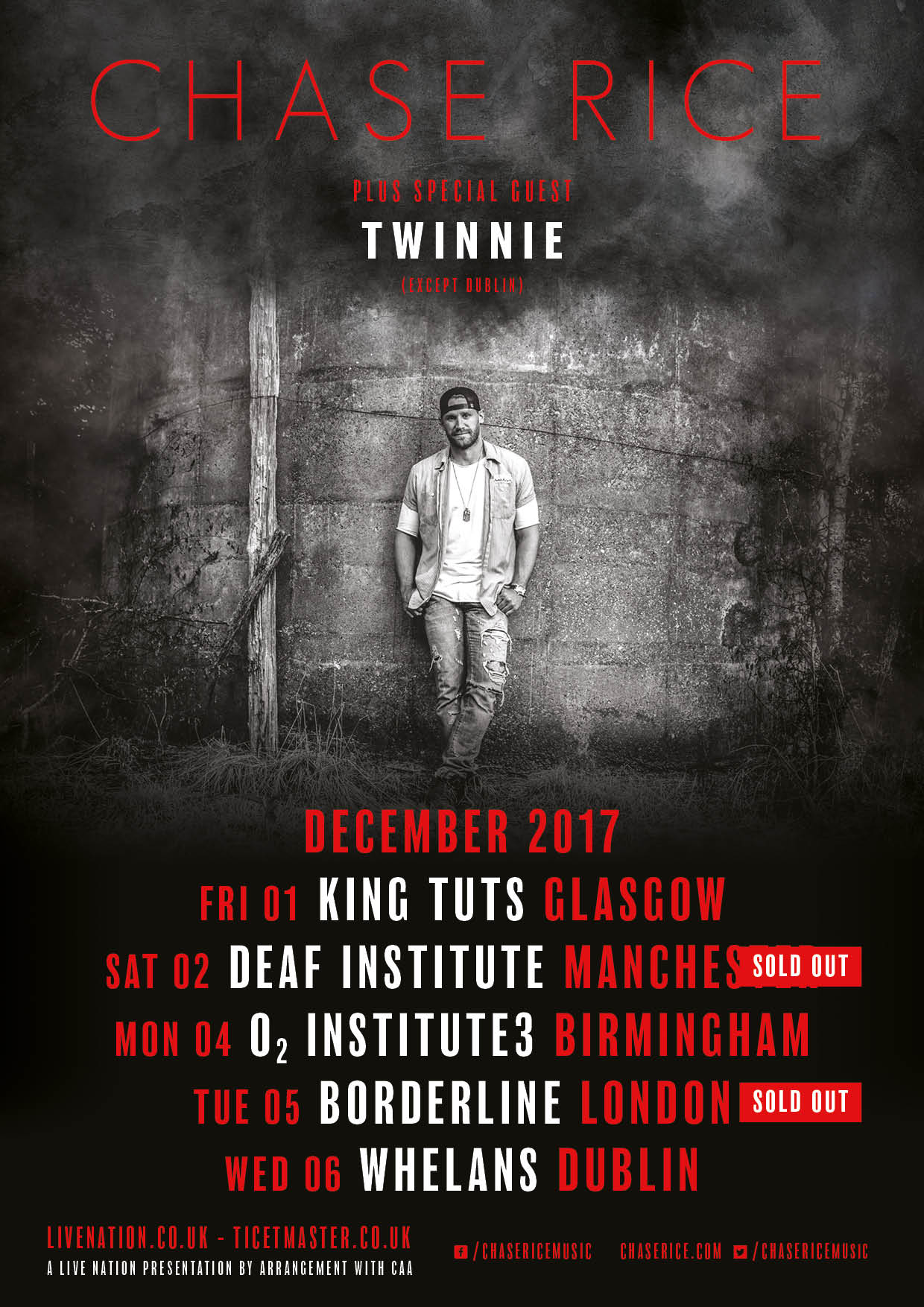 With current single ‘Three Chords & The Truth’ rapidly gaining momentum along with the release of his first album release for Broken Bow Records, ‘Lambs & Lions’ last week, Nashville country artist Chase Rice is preparing for his first tour of the UK & Ireland, with headline dates in London and Manchester already sold out, and limited tickets still available in Birmingham, Glasgow & Dublin. The shows form part of a tour spanning two continents, three countries, four months, and over 30 tour dates. UK/Ireland dates as follows: