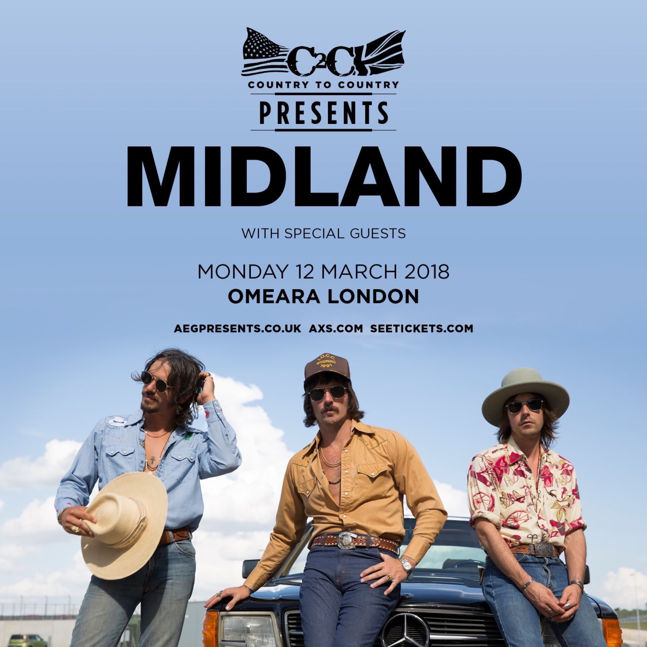 Midland will make a quick costume change and take to the stage in London for a one off under-play at Omeara before heading back to the US to join the Little Big Town tour.
