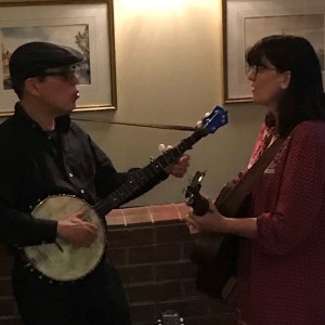 Playing a set with no amplification and mainly of original material the duo calmly entertained the audience with their gentle melodies, well-honed harmonies and charming repartee.