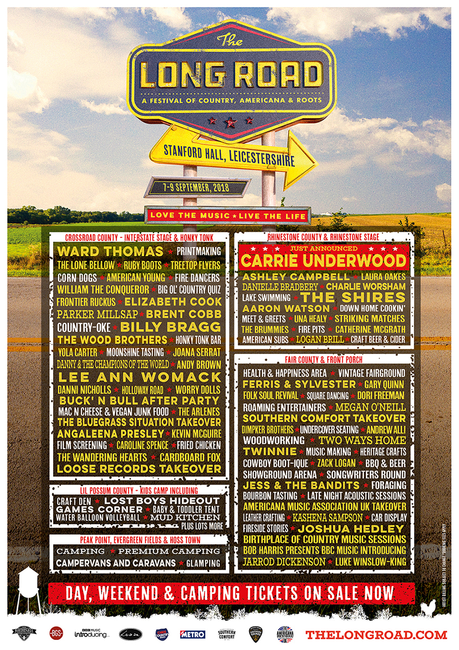 The Long Road Festival, in its first year this year takes place on the 7th – 9th September at Stanford Hall, Leicestershire. This three day event can boast some of the genres finest artists such as headliner Carrie Underwood, UK stars The Shires, Ward Thomas, The Wandering Hearts and Catherine McGrath, Brent Cobb, Lee Ann Womack, Charlie Worsham, Danielle Bradbery, Billy Bragg and so much more.