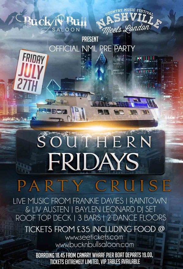 The following day, Friday, July 27, Buck’ N Bull Saloon and Nashville Meets London will come together to host a ‘Southern Fridays’ boat cruise down the River Thames. The programme includes acoustic performances by Liv Austen, Frankie Davies, and Raintown, and a DJ set by Baylen Leonard featuring fan-favorites spanning Country and Americana. More information surrounding the pre-festival cruise is available by visiting http://www.bucknbullsaloon.com.