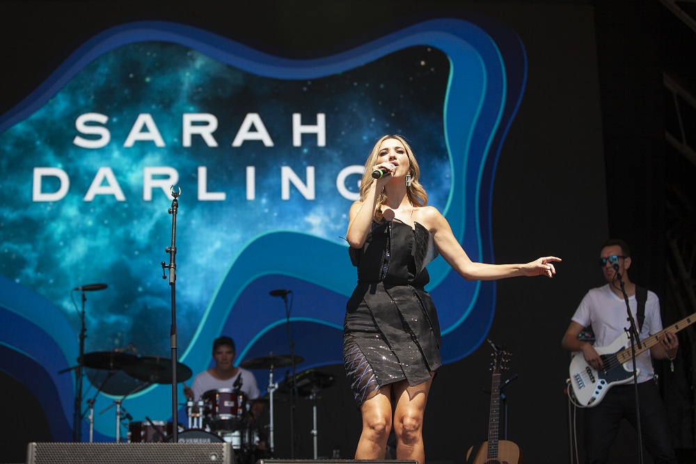 One of the brightest stars of the country music scene, Sarah Darling, lit up the Barclaycard Stage on Sunday when she wore a Bluetooth-enabled haute couture dress composed of thousands of programmable micro-LEDs and sequinned panels.
