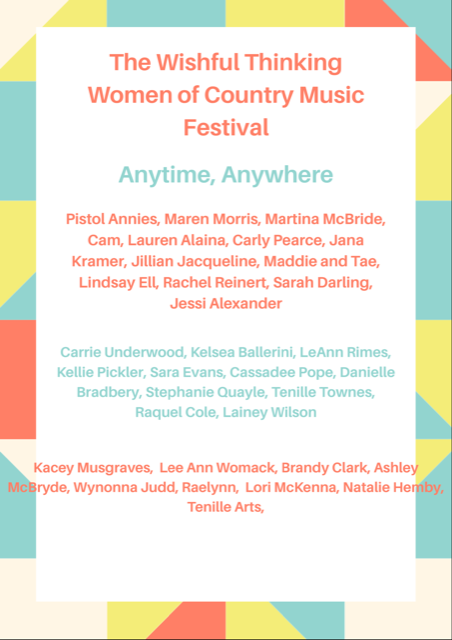 So, with all that being said, I have listed a Wishful Thinking Festival of Women In Country Music. There will be people missed off as did this rather quickly but it is still a pretty dang good line up and heck, I would go in a heartbeat. All these amazing women in country music practically on your doorstep organisers, yet you are not booking them. Not much else needs to be said other than, we want more women at festivals and on radio.