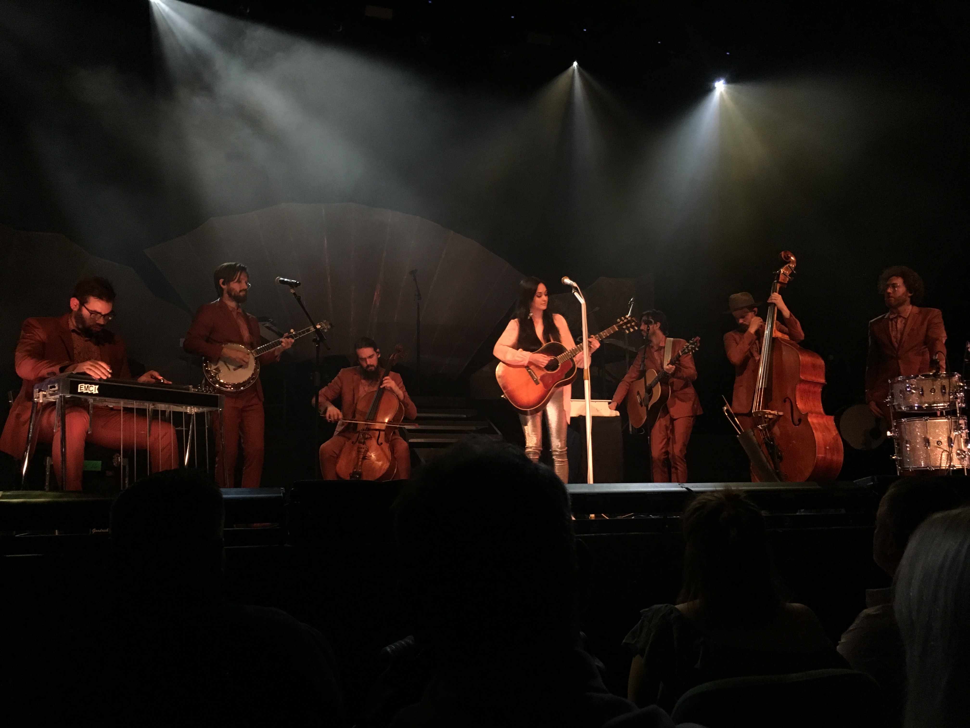 The stage lit up as the band played the intro to the first song. Just a silhouette of Kacey could be seen at this point at the top of some small stairs as she began to sing a favourite of mine from the album Slow Burn. As the light shone on her, she sparkled with her colourful, striped, fringed bodysuit. Straight into Wonder Woman next, Kacey strutted down the stairs and the crowd went wild.