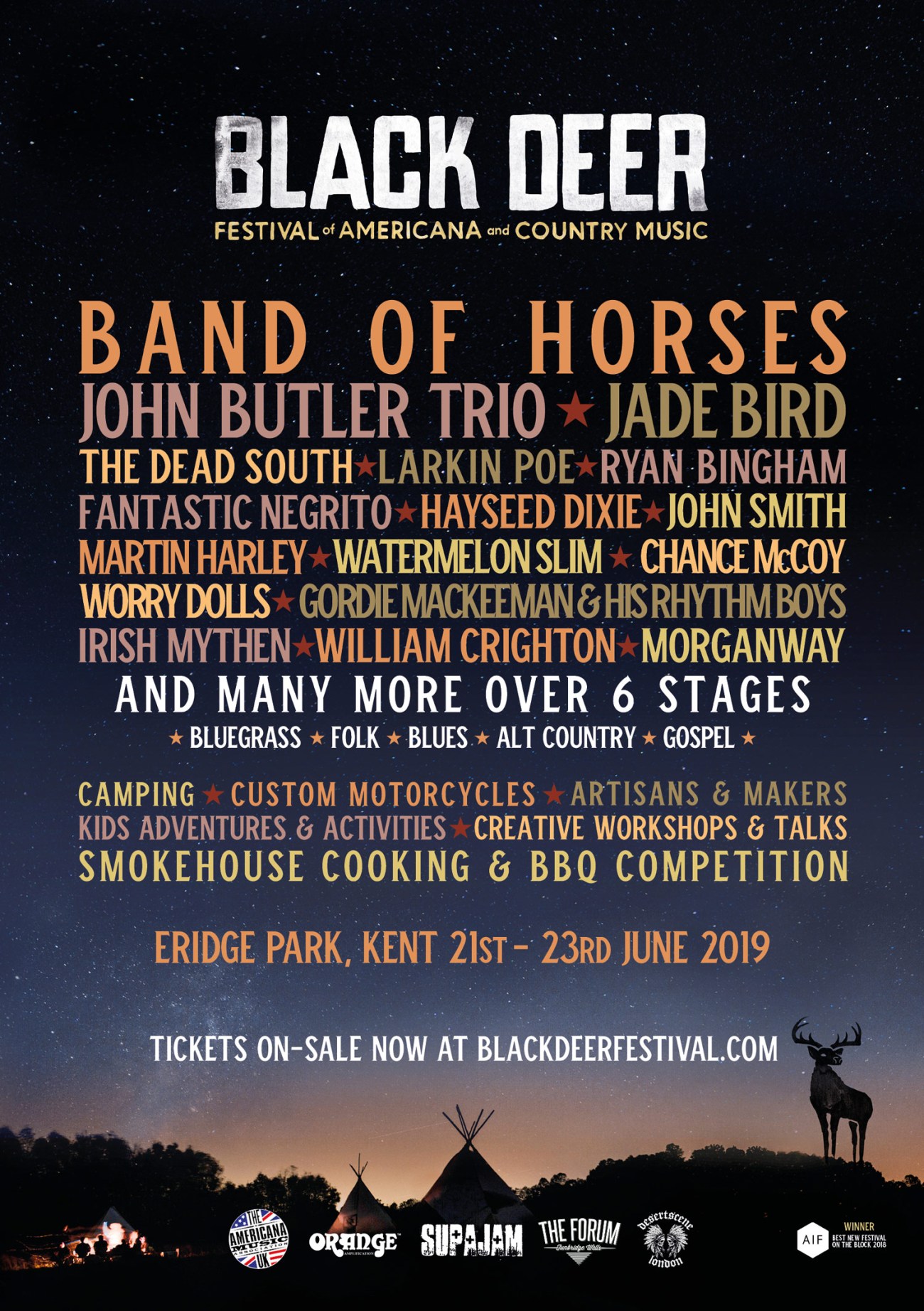 This year, Black Deer Festival are delighted to welcome The Americana Music Association UK (AMA UK), Orange Amplification, Desertscene, Barons Speed Shop as this years partners, as well as return from the inspiring Supajam and esteemed Tunbridge Wells Forum.