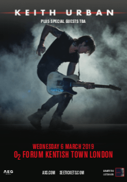 Keith, who is as renowned for his live shows as he is for his No. 1 songs and multi-platinum albums, is sure to delight his UK fans with a jam-packed, no frills set, including his biggest hits, as well as his latest single “Never Comin Down,” from his 9th studio album, Graffiti U, released in the UK on the 8th March.