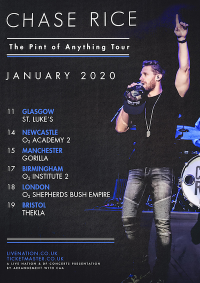 Chase Rice has announced his much-anticipated return to the UK & Europe in January 2020 following a mainstage performance at C2C Festival earlier this year, and the two-week US country radio #1 for his Gold-certified viral hit ‘Eyes On You’ (listen here). The twelve-city ‘The Pint of Anything’ tour includes full band headline UK shows with stops in London, Glasgow, Belfast and Manchester among others, and his first foray into Germany and the Netherlands for a series of acoustic shows. Full dates below:
