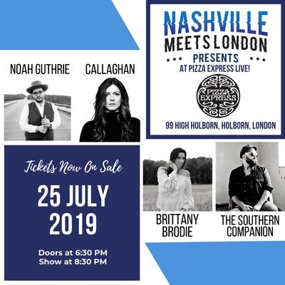 Kicking off the NML week is Nashville Meets London Presents! at PizzaExpress Live on 24 and 25 July. Scheduled to perform are Holloway Road, Angie K, Clara Bond, and Danny McMahon on 24 July; then on 25 July Brittany Brodie, Callaghan, The Southern Companion, along with 2019 NML festival performer, Noah Guthrie will perform. Doors open for both shows at 6:30 p.m. with the show starting at 8:30 p.m. Tickets to both events are limited and cost £20.00 per ticket. Tickets are available for purchase here (24 July) and here (25 July).