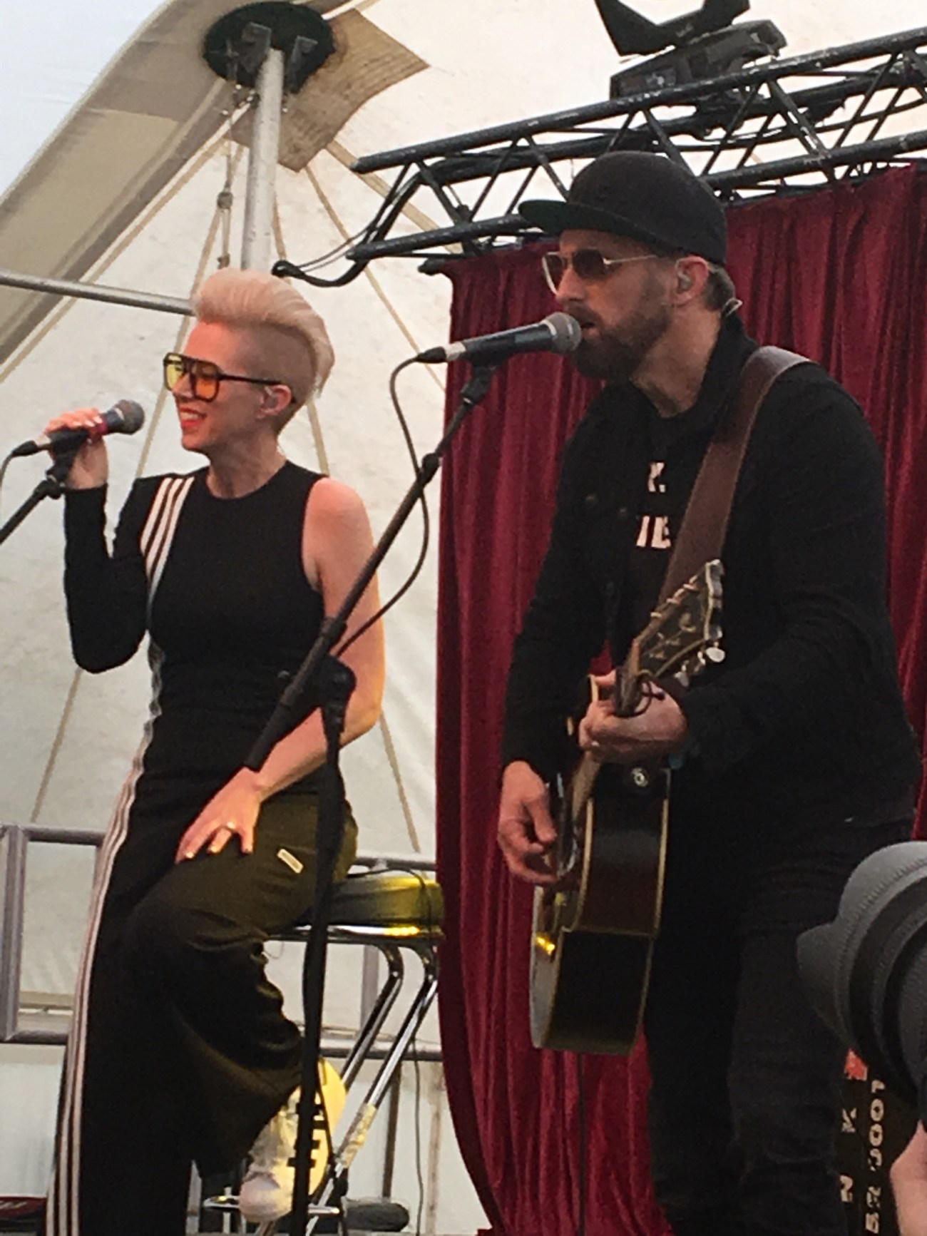 Thompson Square played the Interstate Stage at The Long Road and were put on way too early at 11.50 on the Sunday. Probably having more awards than the rest of the acts playing combined (as discussed by myself and James at Lyric Magazine) we were shocked they weren’t given main stage and at a much more prime time. Lesson learned I am sure. At first, upon arrival the tent was empty apart from about ten people, this also raised our concerns with timings. However, as soon as Thompson Square arrived, the tent filled up rather quickly. Even Keifer said he was worried for a bit. Hey, I made front row so I was pleased.