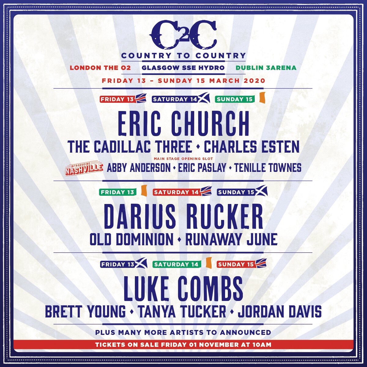 I am grateful for the lovely artists who don’t forget us, who appreciate us and always come back and always put on a good show. Darius Rucker well deserves his main headline slot more so than most, his career has been the longest and has released the most albums and let’s face it, there aren’t many who can give a performance quite like him. Eric Church is a hell of an arena showman and last time he was here he was poorly and still played an electrifying set so imagine next years set? Luke Combs, well people love him and he is yet to prove to me if he is a headliner although am sure he is. As for the rest? Well I am ecstatic over Jordan Davis getting a well deserved spot, Runaway June and Abby Anderson for being yet another artist to claim Satellite to main stage status in a year and seeing much loved Eric Paslay who is an exceptional performer and Tenille Townes who is going to be huge soon already get a main stage spot which most Festivals wouldn’t even consider. The important legend spot that C2C provided for years has brought over two amazing women in the last two years (including 2020) and TanyaTucker will blow everyone away. Brett Young is a popular addition and Old Dominion never get boring and will no doubt take it up a notch or two. Then you have recent addition Old Crow Medicine Show of Wagon Wheel Fame. They are playing the same day as Darius so will he appear during their set for the song? You never know! He did on his Hootie tour with Drivin’ N Cryin’ for Straight to Hell. Then you have TV star Charles Esten. A shock to many of us but this man has filled the Royal Albert Hall and Shepherds Bush Empire in one year so must be doing something right.