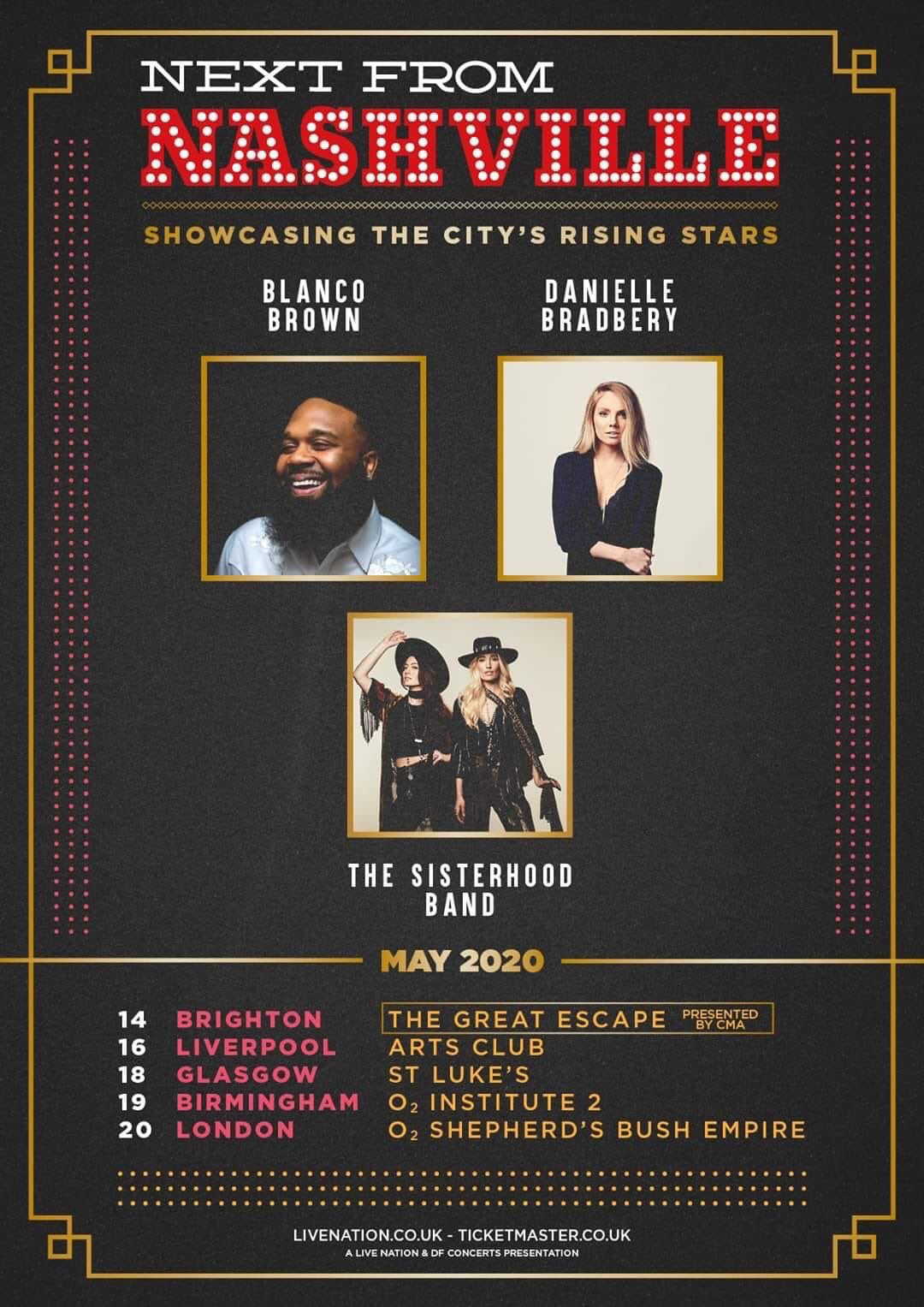 With performances by Blanco Brown, Danielle Bradbery and The Sisterhood Band, the showcase will be followed by a string of UK tour dates, including London (O2 Shepherd’s Bush Empire), Liverpool (Arts Club), Glasgow (St. Luke’s) and Birmingham (O2 Institute2) between