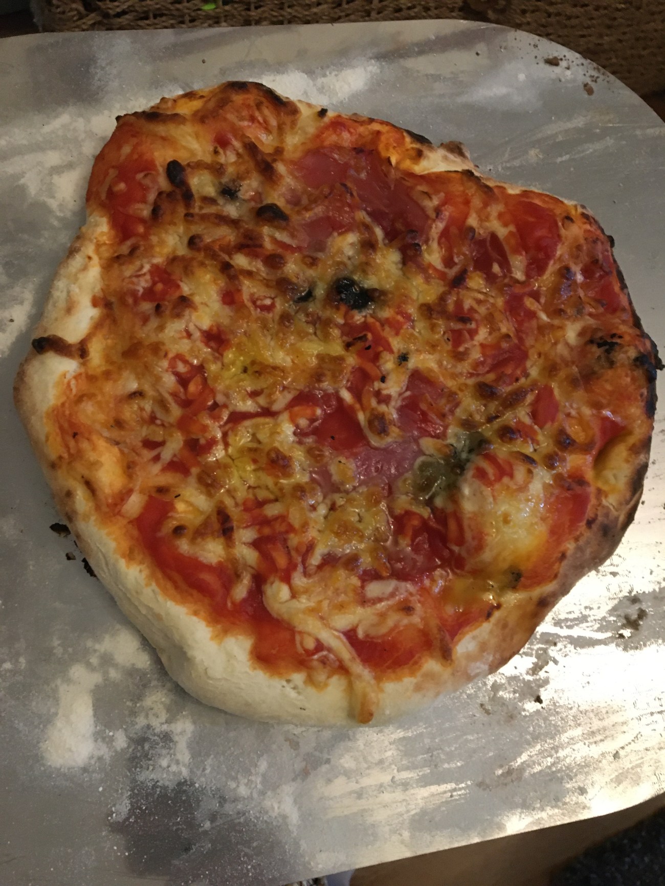 Cooked version of our sons pizza he made, yum!