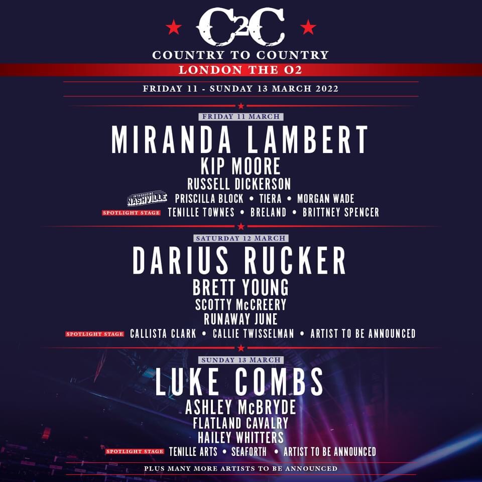 Country to Country 2022 is also delighted to confirm the Spotlight Stage is returning to London presenting some of the brightest upcoming artists including BRELAND, Brittney Spencer, Callie Twisselman, Callista Clark, Seaforth, Tenille Arts and Tenille Townes with more to be announced.