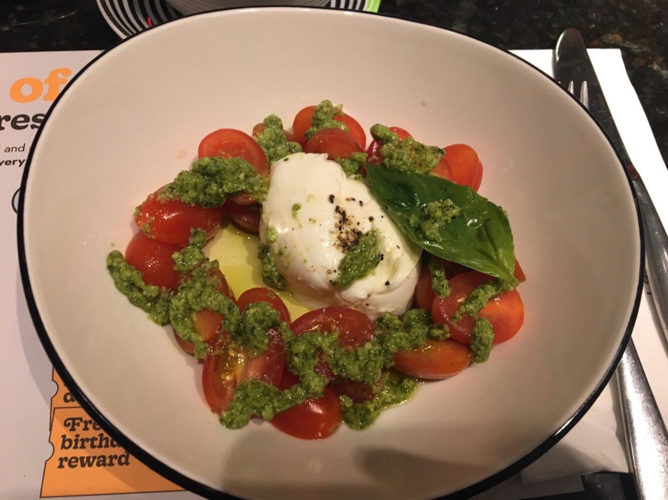 We ordered Dough Balls and Buffalo Mozzarella and Tomato Salad. (Buffalo mozzarella, tomatoes and basil & pine kernel pesto)
