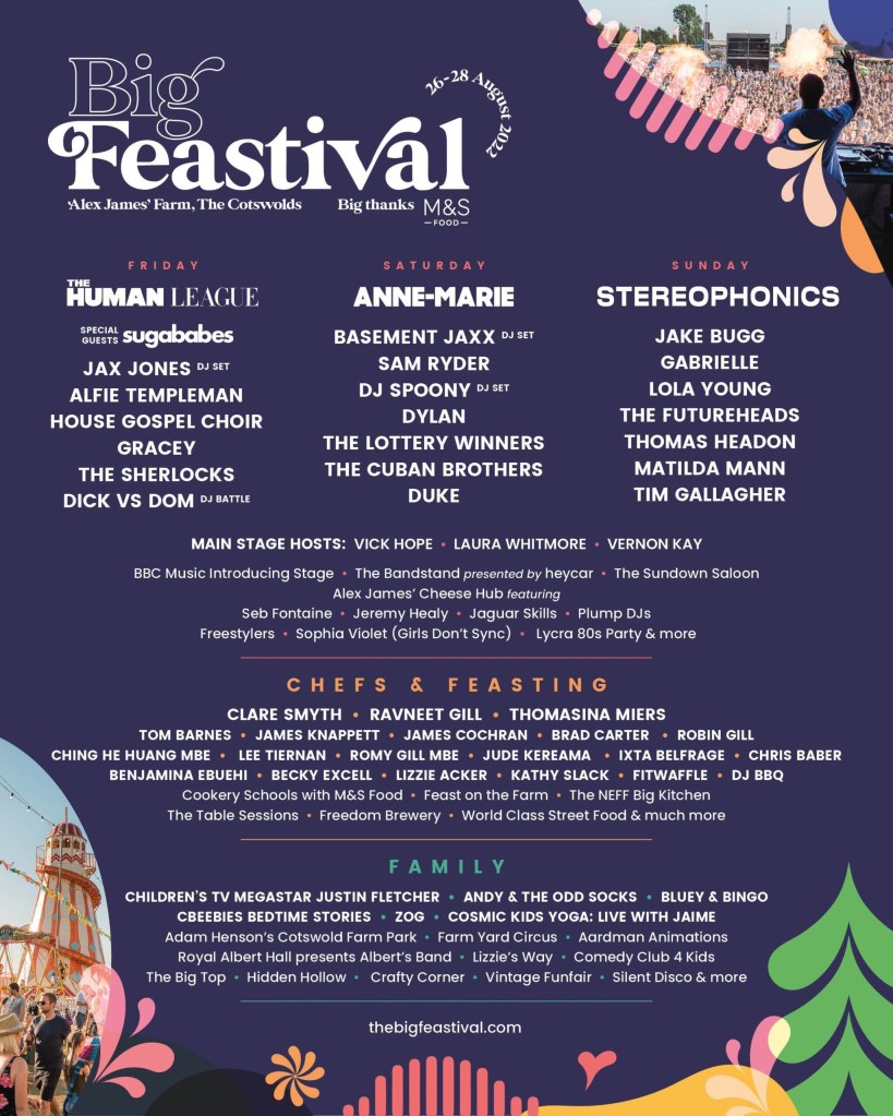 Set on Alex James’ (from Blur) cotswold farm, The Big Feastival plays host to the UK’s biggest, newest and rising stars as well as live shows from Michelin Star Chefs, award winning street food and a wide variety of activities for kids including some CBeebies favourites performing.