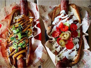 The Footlong Dirty Dogs look ridiculously good. I am not much of a hot dog person but these may sway me. The Dirty Dog is a foot long smoked sausage loaded with beef brisket or pulled pork, smothered with bbq sauce, cheese and chipotle sauce.