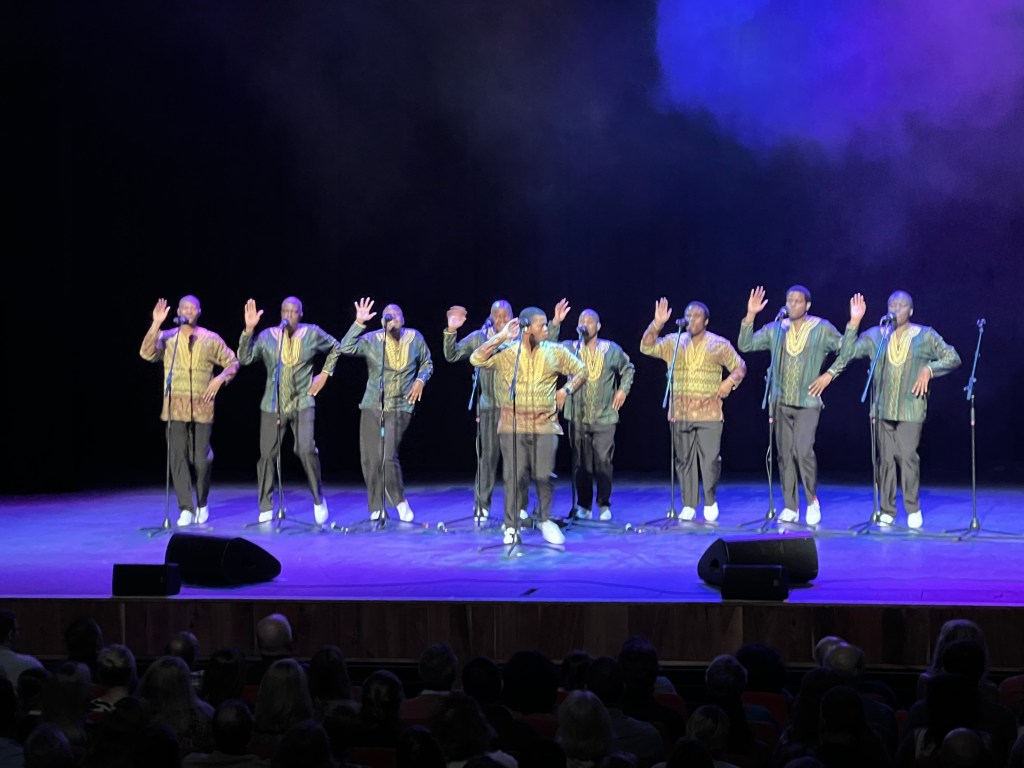 The togetherness of the first track, This Is The Way We Do, set the tone for the evening’s performance, with perfect pitch, timing, grace and professionalism. The group used to enter choral competitions in South Africa in the sixties until they were persuaded to stop entering as they won pretty much every one. Nelson Mandela called them ‘South Africa’s cultural ambassadors’. He took them with him to sing when he accepted the Nobel Peace Prize and they performed at his inauguration. At the G Live they performed their ‘tribute to our great leader’ Long Walk To Freedom.