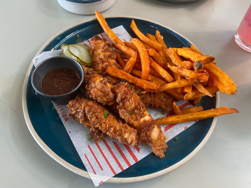 The chicken was Buttermilk Fried Chicken Tenders with Pineapple BBQ Sauce and I had Sweet Potato Fries and Coleslaw as Sides. Very well cooked and very tasty, the tenders blended beautifully with the Pineapple BBQ Sauce. There were other choices of sauce but the Pineapple did it for me. I wouldn’t usually go for BBQ sauce but am glad that I opted for this. The sweet potato fries were nice and the coleslaw was light and tasty.