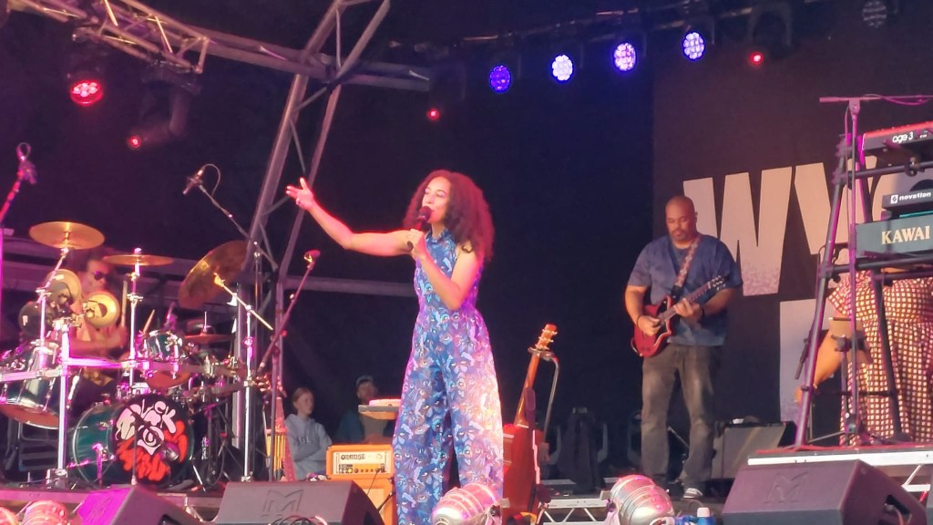 Corinne Bailey Rae (presents Black Rainbows) was fantastic although at times she was drowned out by other music surrounding the festival! Playing music from the most recent album Black Rainbows, Bailey Rae’s vocals were flawless and her new music live was perfect in a festival setting! The rockier side of Corinne Bailey Rae really suits her but it was also great to reminisce on tracks such as Put Your Records On and Like a Star.