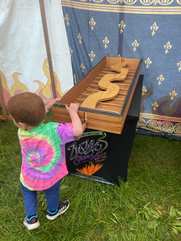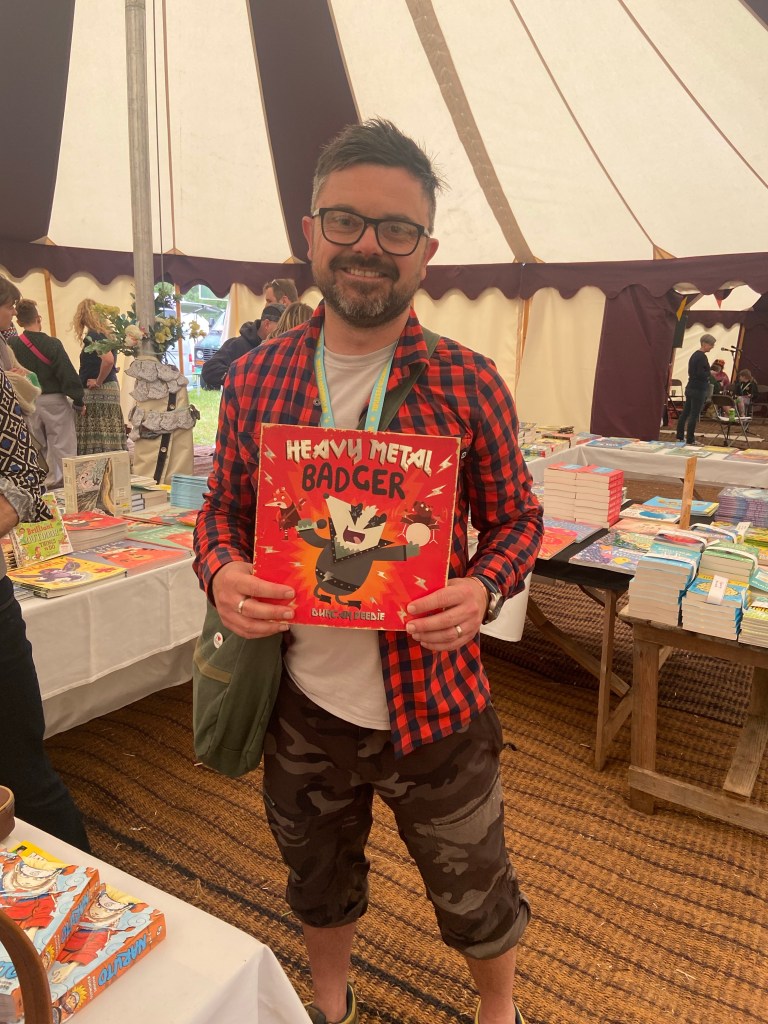 If you are bringing children, they won’t be bored as there are many free activities that they can be a part of as well as paid ones. The fairground has two rides which aren’t suitable for the younger ones but fine for older kids. Scattered across the site however, kids could take part in circus skills, ball games, board games, and old fashioned games all for free. They also had arts and crafts activities for a small fee. What was particularly great was the book stall and signings with authors. In this tent you could buy books as well as meeting the author at certain times on certain days. It’s a fun way of keeping kids interested in books and away from screens. We were fortunate to meet the author of children’s book Heavy Metal Badger – Duncan Beedie and he signed his book for my two sons.