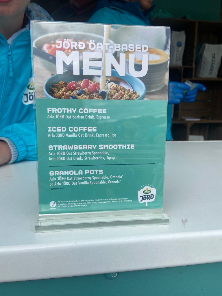 The Village Green is also the place to go for free samples!!!! Who doesn’t love a free sample??? M&S had cheeses and fresh fruit whilst handing out Percy The Pig and Colin the Caterpillar drawstring bags as prizes for children who completed a card of activities. Arla were handing out their Jörd range of Nordic oat based drinks and were selling frothy coffee with the Nordic Oat milk in it for just £1 which you also received a free small tub of Strawberry Oat Based Fermented Product topped with granola. They also handed our free coffee frothers in boxes. We thoroughly enjoyed their products!