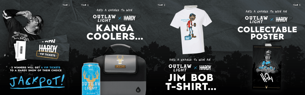 “Outlaw’s been riding with me since the beginning, and these limited-edition cans are just another way we’re showing love to the fans,” said HARDY. “I’m stoked for folks to crack open a cold one, find a HARDY can and maybe even score some VIP tickets to the JIM BOB World Tour. It’s our way of bringing the party straight to your cooler.”